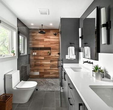 Nature's Embrace: Incorporating natural elements like wood accents, stone tiles, and living plants brings the outdoors in.